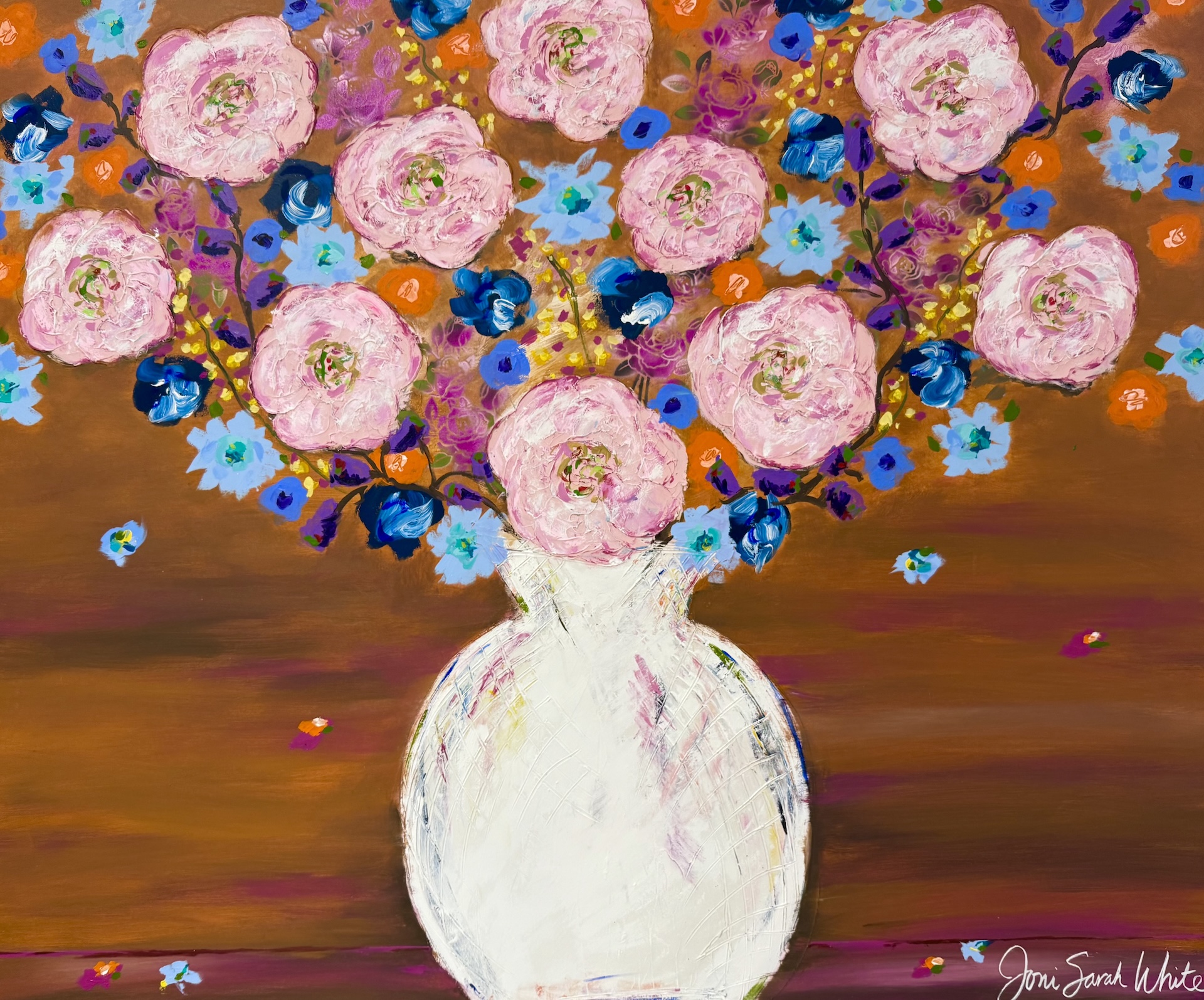 Joni Sarah White is a Neo-Expressionist painter from Akwesasne, Mohawk Nation, known for bold color, rich texture, and emotionally powerful contemporary paintings. Her work is inspired by travel, memory, and the natural world—created to bring energy and soul into a space. Available pieces include original paintings on canvas and works on paper, ranging from small collectible pieces to large statement works for homes and design projects.